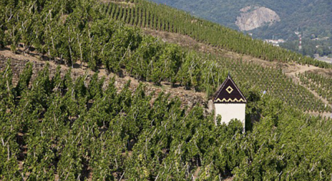 在北羅納河谷葡萄園,河流流經之處多為狹窄的峽谷和陡峭的山坡,因此葡萄園也更多地種植在靠近河流的陡坡上。由于離海洋較遠,北羅納河谷葡萄園以大陸性氣候為主,但又多多少少會受到地中海(Mediterranean)氣候的影響,夏季炎熱干燥,冬季寒冷少雨。這里的土壤以礫石、石灰?guī)r和頁巖為主,排水性能優(yōu)越。這樣一來,種植在山坡上的葡萄藤可以更好地接收生長季充足的陽光,再加上排水性良好的土壤,有助于葡萄果實更好地成熟。北羅納河谷葡萄園著名的子產區(qū)羅第丘(Cote Rotie)在法語中意為“被炙烤的山坡”,就很形象地描繪了這一風土特點。