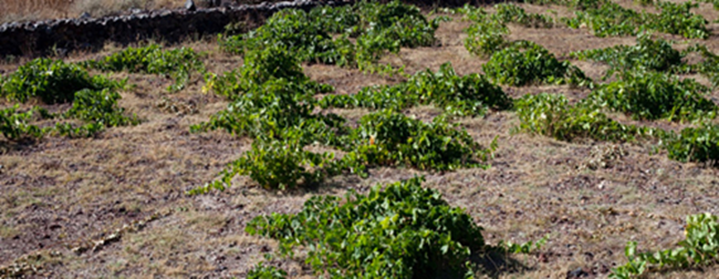 該島大多數(shù)葡萄園都位于該島的南部和西南部,地處由火山噴發(fā)而形成的火山巖和沙質(zhì)土壤中,其水分和有機(jī)物的含量幾乎為零,因此可有效避免葡萄根瘤蚜(Phylloxera)的入侵。為了保護(hù)園內(nèi)樹藤與果實免受當(dāng)?shù)氐膹?qiáng)風(fēng)吹襲,葡萄種植者們將藤枝修剪成低矮的簍子形狀,使葡萄在其內(nèi)側(cè)生長。然而,海風(fēng)能夠促進(jìn)空氣的流通,防止葡萄樹滋生疾病與腐爛,從而維持葡萄的健康生長。
