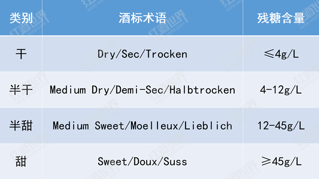 2. 以甜度劃分——干型、半干型、半甜型和甜型
