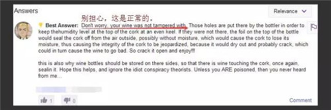 有網友問道,葡萄酒的瓶封上有小孔,這是咋回事?