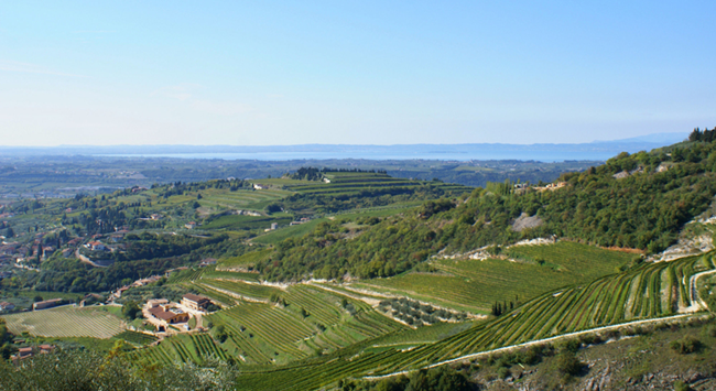 瓦坡里切拉位于維羅納(Verona)北部,地處阿爾卑斯山(Alps)山麓,西面臨近意大利最大的湖泊加爾達(dá)湖(Lake Garda),地形以平原和山麓為主。由于受到山脈的阻擋,再加上湖泊的調(diào)節(jié)作用,產(chǎn)區(qū)內(nèi)的氣候整體比較溫和,可以為葡萄提供理想的自然生長(zhǎng)環(huán)境。相傳在拉丁語(yǔ)中,產(chǎn)區(qū)名字“Valpolicella”意為“Valley of Many Cellars(匯聚眾多酒窖的山谷)”,這也從側(cè)面印證了該地與葡萄酒的淵源。