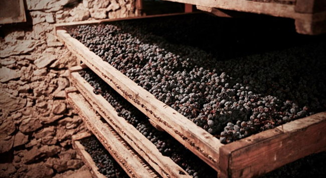 阿瑪羅尼葡萄酒獨(dú)樹(shù)一幟的風(fēng)格,離不開(kāi)其令人津津樂(lè)道的釀造方法——帕賽托法(Passito Method)。帕賽托法指的是用風(fēng)干的葡萄釀造葡萄酒的工藝,因而又稱(chēng)枯藤法(Appassimento)。每年葡萄成熟季時(shí),酒莊的工作人員會(huì)提前采收葡萄,這時(shí)葡萄的酸度還很高,采收后并不急著將它們送去釀酒,而是將葡萄放在通風(fēng)良好的室內(nèi)風(fēng)干幾個(gè)月,使果實(shí)流失部分水分,糖分和風(fēng)味物質(zhì)得以集中。這種方法可以為成酒增添風(fēng)味、酒體和酒精度。