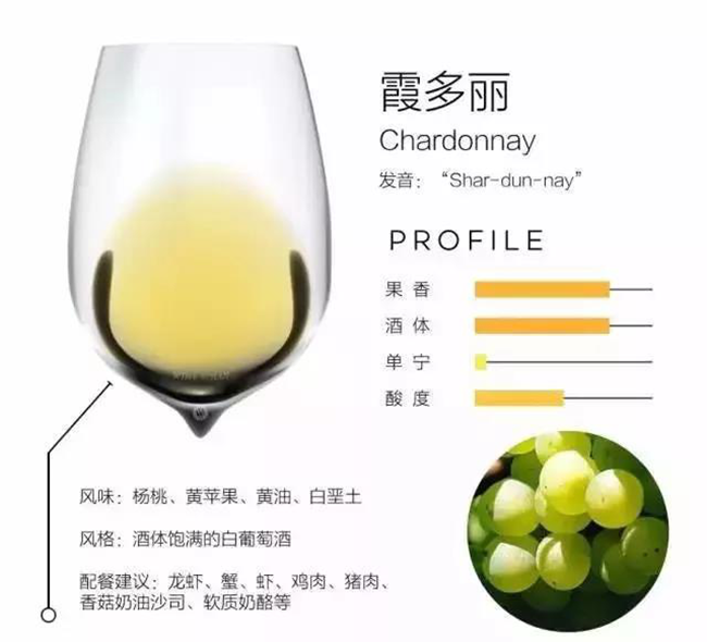 霞多麗是一款源自法國的干型、飽滿的白葡萄酒。經過橡木桶熟成的霞多麗會有奶油和黃油的味道。