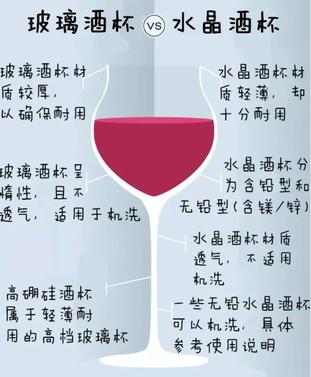 喝葡萄酒的酒杯種類繁多,形狀各異,再加上市場上各種商店價位……如何挑選適合的酒杯便成為了一件頭疼的事情。在選購的時候,除了需要關注酒杯的形狀外,材質(zhì)也是不可忽略的要點。