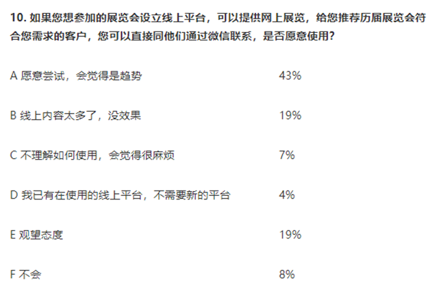 10. 43%的企業愿意嘗試網上展會。