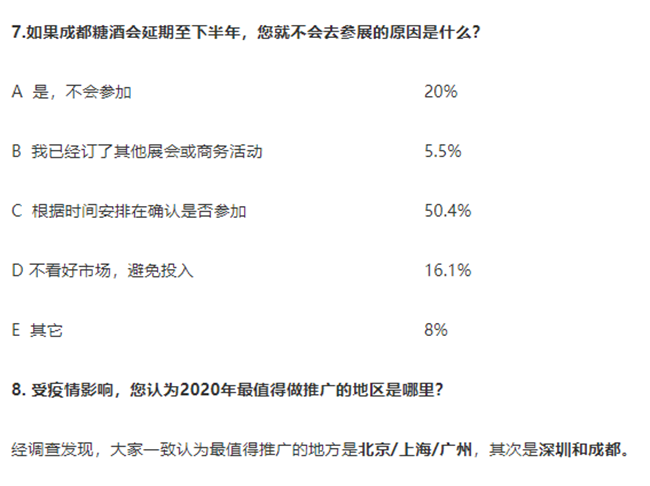 7. 50.4%的企業在觀望成都春季糖酒會的延期時間以便確認是否參加。