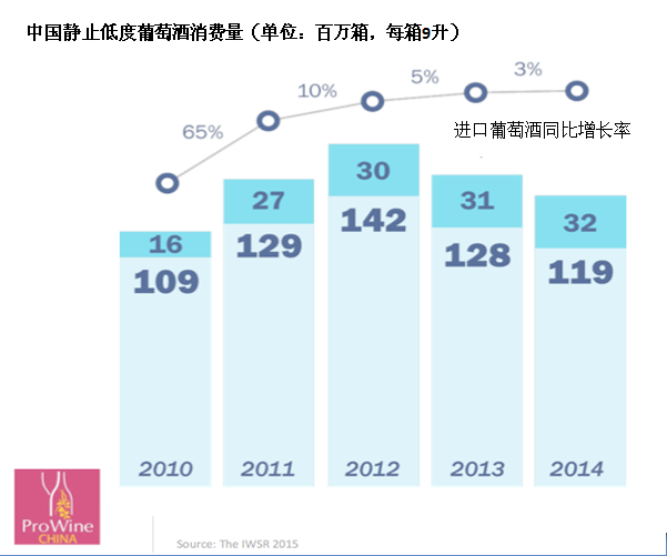 上周在ProWine China的展覽會上,引用國際葡萄酒及烈酒研究機(jī)構(gòu)的數(shù)據(jù)來說明,中國市場是如何在2010年到2011年之間實(shí)現(xiàn)快速增長,到2012年達(dá)到頂峰,又是如何在過去的兩年里開始回落的。