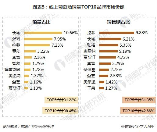 一個(gè)行業(yè)的CR4達(dá)到60%以上就可成為一個(gè)成熟行業(yè)。葡萄酒行業(yè)碎片化依然嚴(yán)重,但品牌化趨向集中,同時(shí)價(jià)值驅(qū)動(dòng)風(fēng)向逐漸成型。2017年,前十大品牌銷量集中度達(dá)38.45%,銷售額集中度達(dá)42.66%。根據(jù)近幾年的數(shù)據(jù),葡萄酒已經(jīng)開始逐年向頭部品牌企業(yè)集中,未來幾年中國葡萄酒行業(yè)格局將經(jīng)歷一個(gè)重要的變化。