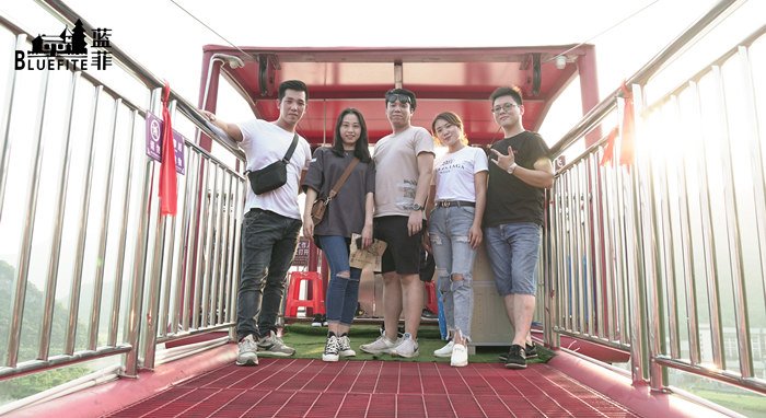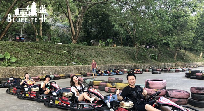 當(dāng)然啦,除了飛龍蹦極,這里還有很多極限活動(dòng)等著我們來(lái)打卡,寶晶宮跑跑卡丁車圓了我們的賽車夢(mèng),讓我們親身體驗(yàn)速度與激情,過(guò)一把賽車手的癮;天山滑道帶領(lǐng)我們?cè)谏峙c喀斯特地貌之中急速穿行,真實(shí)還原過(guò)山車叢林穿越,快速、刺激而又唯美;坐上天鵝湖滑索,飛越千畝湖面,仿佛乘風(fēng)前行,將山青水秀、碧波蕩漾的美景盡收眼底......在一輪又一輪驚險(xiǎn)刺激的游戲項(xiàng)目中,藍(lán)菲伙伴們的工作壓力都得到了盡情的釋放,在美景中返璞歸真,共同沉浸在這質(zhì)樸而浪漫的世外桃源。